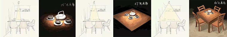 5、材質(zhì)、光束角度、光源色彩等靈活應(yīng)用。材質(zhì)不同,其中透明度、反射率、折射率、發(fā)光度等都不同。不同方向的燈光照射在同一物體上,表現(xiàn)出來的光澤和肌理也是不一樣,靈活駕馭光線的特點,可以讓餐廳墻面或者物體及軟裝陳設(shè)品產(chǎn)生豐富的光暈和肌理的變化。同一個光源,扣上不同型號的燈杯后,它可以產(chǎn)生大小不一的光斑,如果我們從燈體發(fā)散一條射線到達(dá)光斑邊緣,線與燈之間形成的角度就是光束角。相同功率的燈杯,光束角越大,中心光強(qiáng)越小,發(fā)散出的光斑越柔和;相反,光束角越小,中心光強(qiáng)越大,發(fā)散出的光斑越生硬。不同光束角打在墻上的光斑大小是不一樣的,一般20度以下的叫窄光束角,20~40度叫中光束角,40度以上叫寬光束角。在品深餐飲空間設(shè)計中,一般中餐廳的照明使用的光速角在37度,用光線可以覆蓋整個餐桌;而咖啡館喜歡用15度的光速角,光源聚焦在咖啡杯。