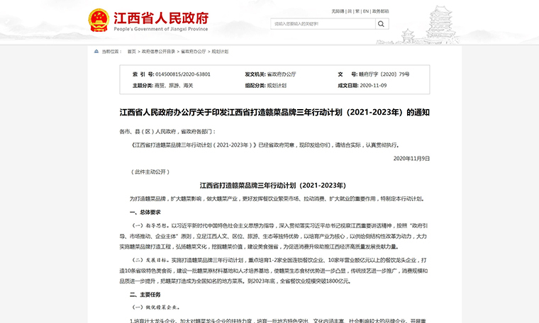 《江西省打造贛菜品牌三年行動(dòng)計(jì)劃(2021~2023年)》(以下簡稱《行動(dòng)計(jì)劃》)共提出包括做優(yōu)贛菜企業(yè)、提升贛菜品牌等主要任務(wù)。