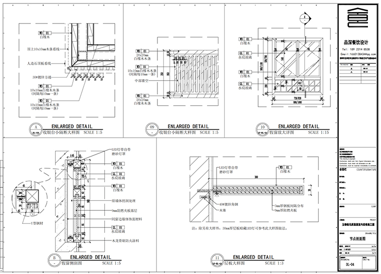 品深餐飲設(shè)計(jì)對(duì)此的定義是:完全能夠精確施工和把控預(yù)算。施工圖中,各種節(jié)點(diǎn)大樣足夠清晰,精準(zhǔn)到一方桌椅,小到抽屜的一個(gè)把手,都要畫清楚,標(biāo)明白。同時(shí)施工還離不開設(shè)計(jì)師的現(xiàn)場(chǎng)交底、節(jié)點(diǎn)驗(yàn)收,項(xiàng)目經(jīng)理的規(guī)范化管理,主創(chuàng)設(shè)計(jì)師或者工程經(jīng)理的定期巡檢。與前期的品牌定位、文化策劃、形象設(shè)計(jì)同樣花費(fèi)時(shí)間的就是深化階段的施工制圖。對(duì)材料、工藝的熟知,對(duì)細(xì)節(jié)的精準(zhǔn)把握,對(duì)預(yù)算的合理劃分,最終將都呈現(xiàn)于一套餐飲空間詳細(xì)施工圖中。品牌餐飲門店的空間裝飾設(shè)計(jì)不僅是天馬行空,落在圖上的每一處,才是品深餐飲設(shè)計(jì)師數(shù)十年的經(jīng)驗(yàn)沉淀。