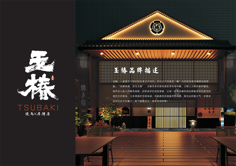 京都味道,匠傳玉椿”,我們精心設(shè)計(jì)的品牌徽章,既表明品牌純正日本燒鳥居酒屋的血統(tǒng)屬性,也昭示我們用心經(jīng)營(yíng),代代傳承的理念與決心。