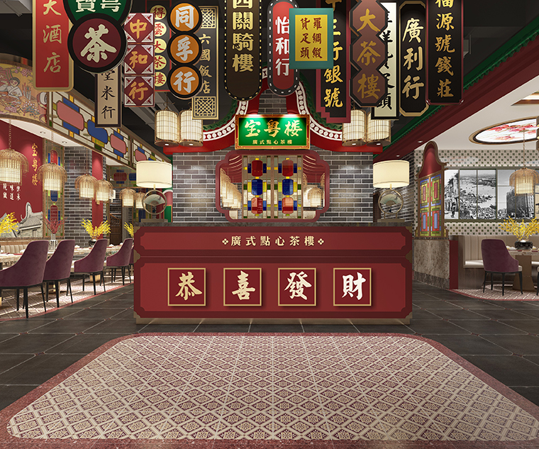 上海寶粵樓廣式茶點全天茶市餐飲空間裝飾裝修設(shè)計軟裝陳列設(shè)計