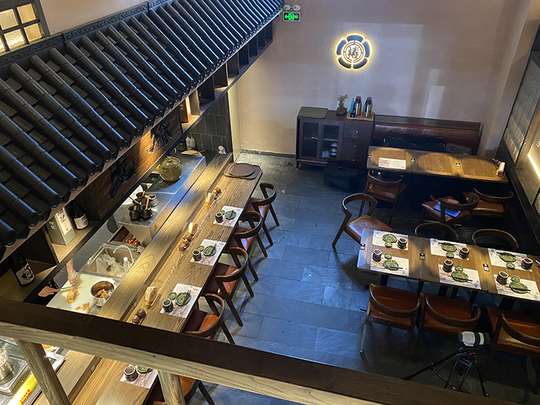 為了營(yíng)造京都風(fēng)格的空間感受,品深餐飲為玉椿設(shè)計(jì)定制的家具采用了實(shí)木材質(zhì),開放漆做舊工藝處理,呈現(xiàn)出一種江戶時(shí)代的歷史滄桑質(zhì)感;與門店的招牌匾額,儲(chǔ)存柜顏色完全一致,顧客使用時(shí)候的歷史體驗(yàn)感更為強(qiáng)烈。